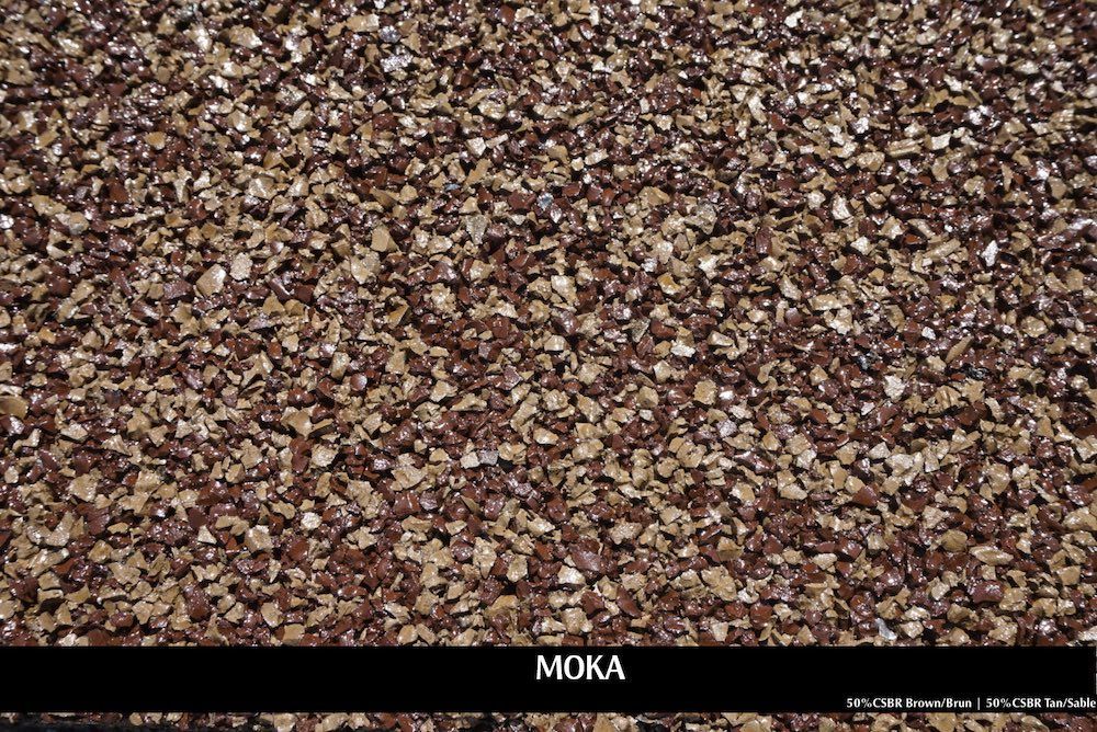 En utilisant des pneus recyclés, cette technique consiste à mélanger des granules de caoutchouc avec un liant à base d’uréthane directement sur le site d'application. Le mélange, qui durcit en seulement 1 à 2 jours, forme un revêtement qui permet à l'eau de pénétrer dans le sol et d'effectuer le processus naturel de filtration de l'eau jusqu'à la nappe phréatique.